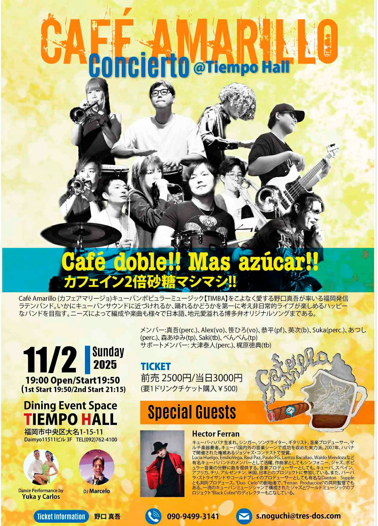 キューバンポピュラーミュージック "TIMBA" をこよなく愛する野口真吾が率いる福岡発信ラテンバンドのワンマンライブ。